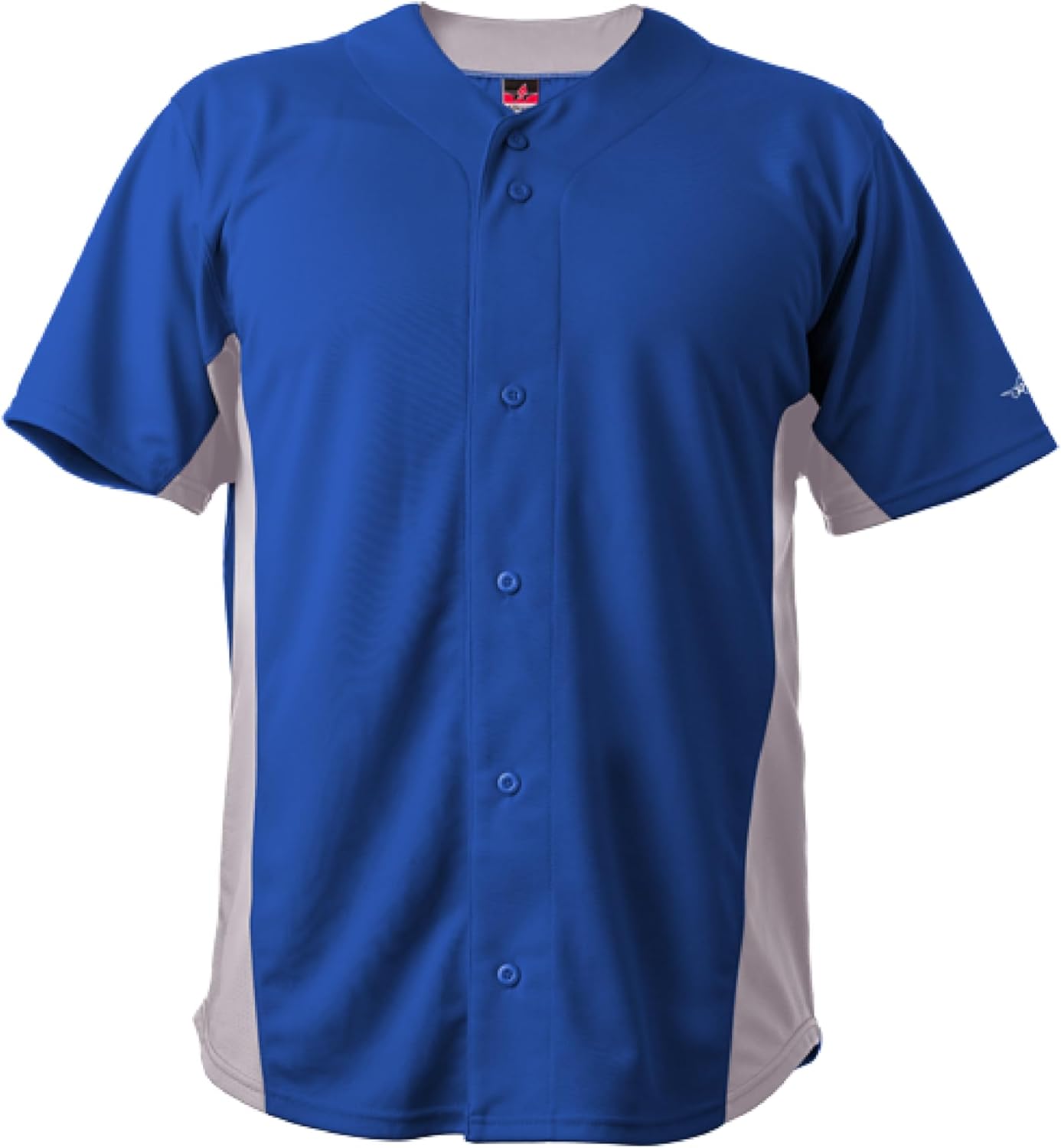 Full button jersey;2 color and solid color option;6 button front (spaced for lettering);Side, back, and underarm mesh area; Collar